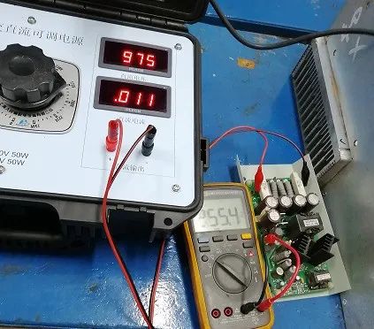 1.先給功率單元加一個交流30V的低電壓。接線順序是電源+調(diào)壓器+變壓器+功率單元,維修工裝給定電壓輸入50%,測量功率單元輸出電壓應(yīng)該是交流15V,然后測量其波形,正常的應(yīng)該是規(guī)律的方波。