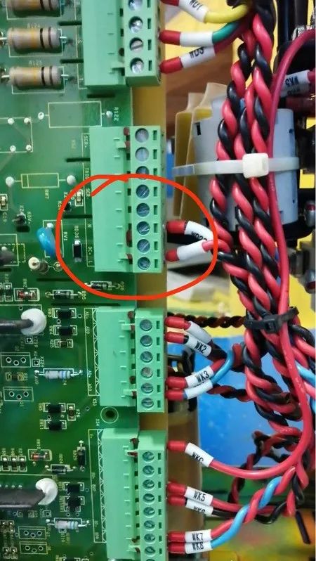 1.拆掉下圖紅圈中的兩根線WD21、WD22,然后接上AC220V的交流電,電路板的L2指示燈就會亮起來。