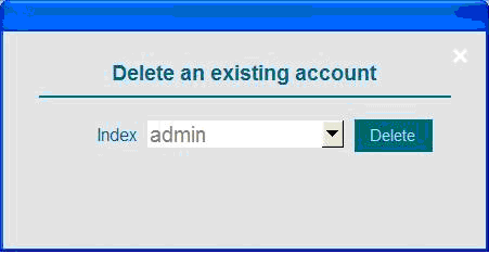 3、當(dāng)點(diǎn)擊“刪除用戶”時(shí),彈出登陸框(圖4),在“index” 下拉框中選擇要?jiǎng)h除的用戶名稱,在點(diǎn)擊“delete”完成用戶的刪除。