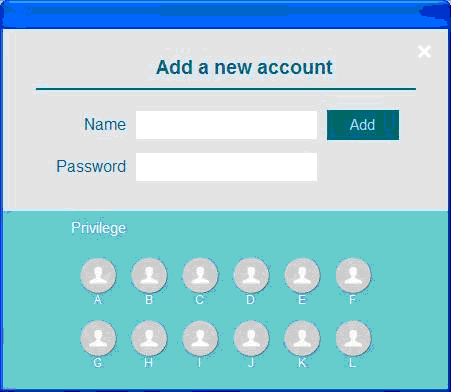 2、當(dāng)點(diǎn)擊“添加用戶”時(shí),彈出登陸框(圖3),在“name” 對話框中輸入要添加的用戶名稱,然后在“password”對話框中輸入密碼,最后在“privilege”選擇所建立用戶的權(quán)限,在點(diǎn)擊“add”完成新用戶的添加。