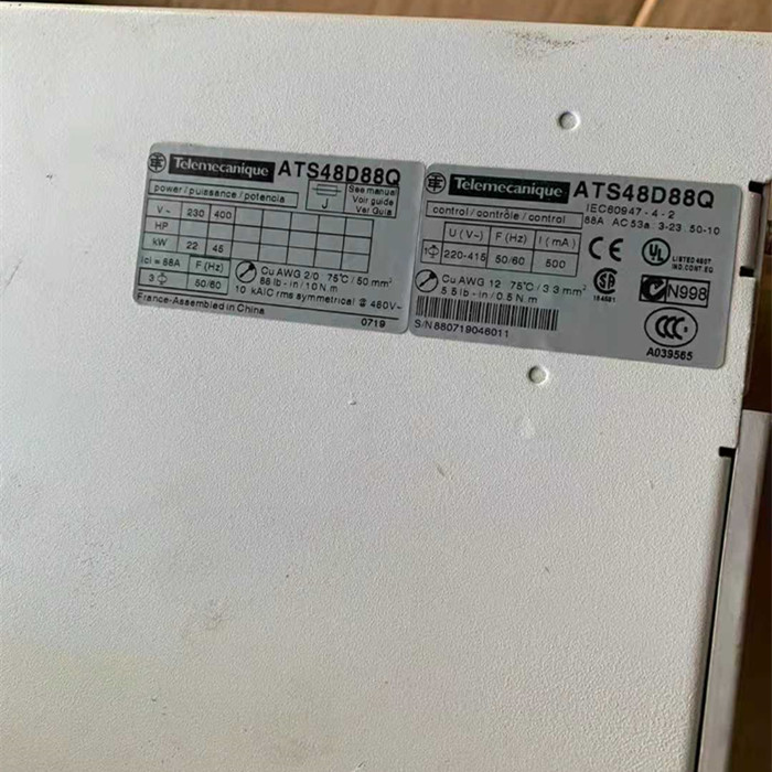 二手施耐德啟動(dòng)器ATS48D88Q。拆機(jī)現(xiàn)貨。質(zhì)量包好,無維修。品牌:Schneider Electric/施耐德;功率:50-59kW;功能狀態(tài):功能完好無維修已用年限1年以下;成色:輕微使用痕跡;